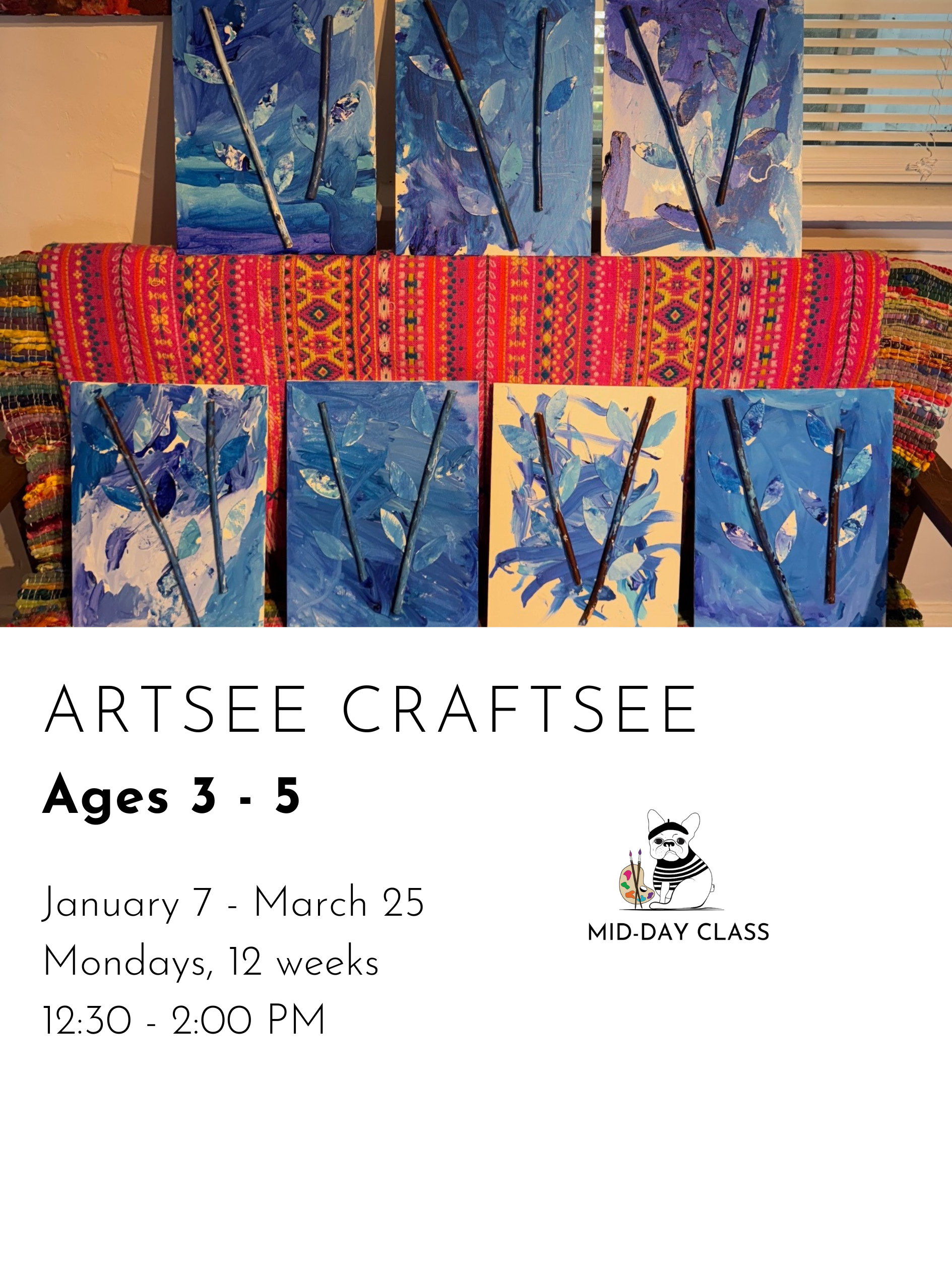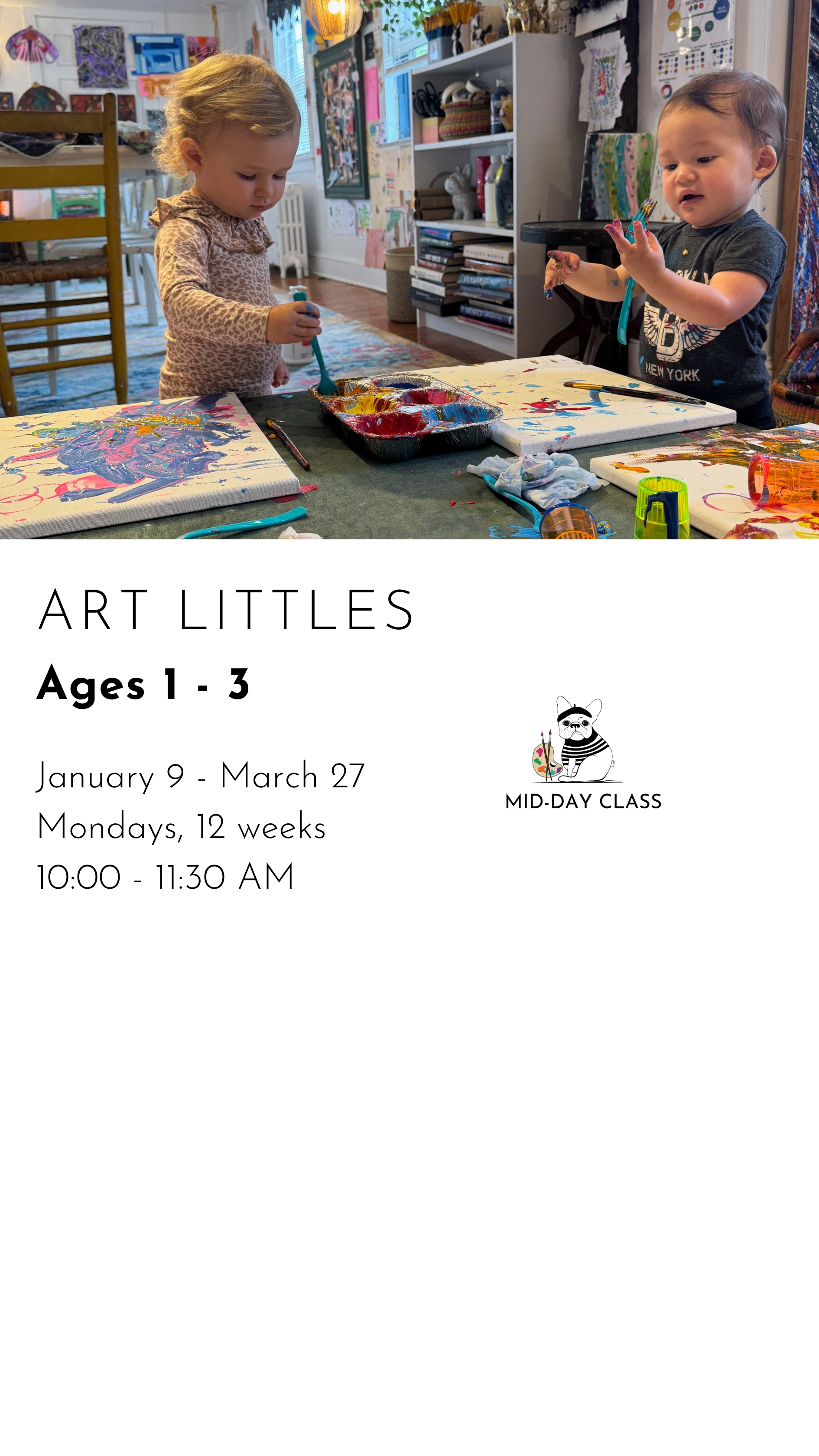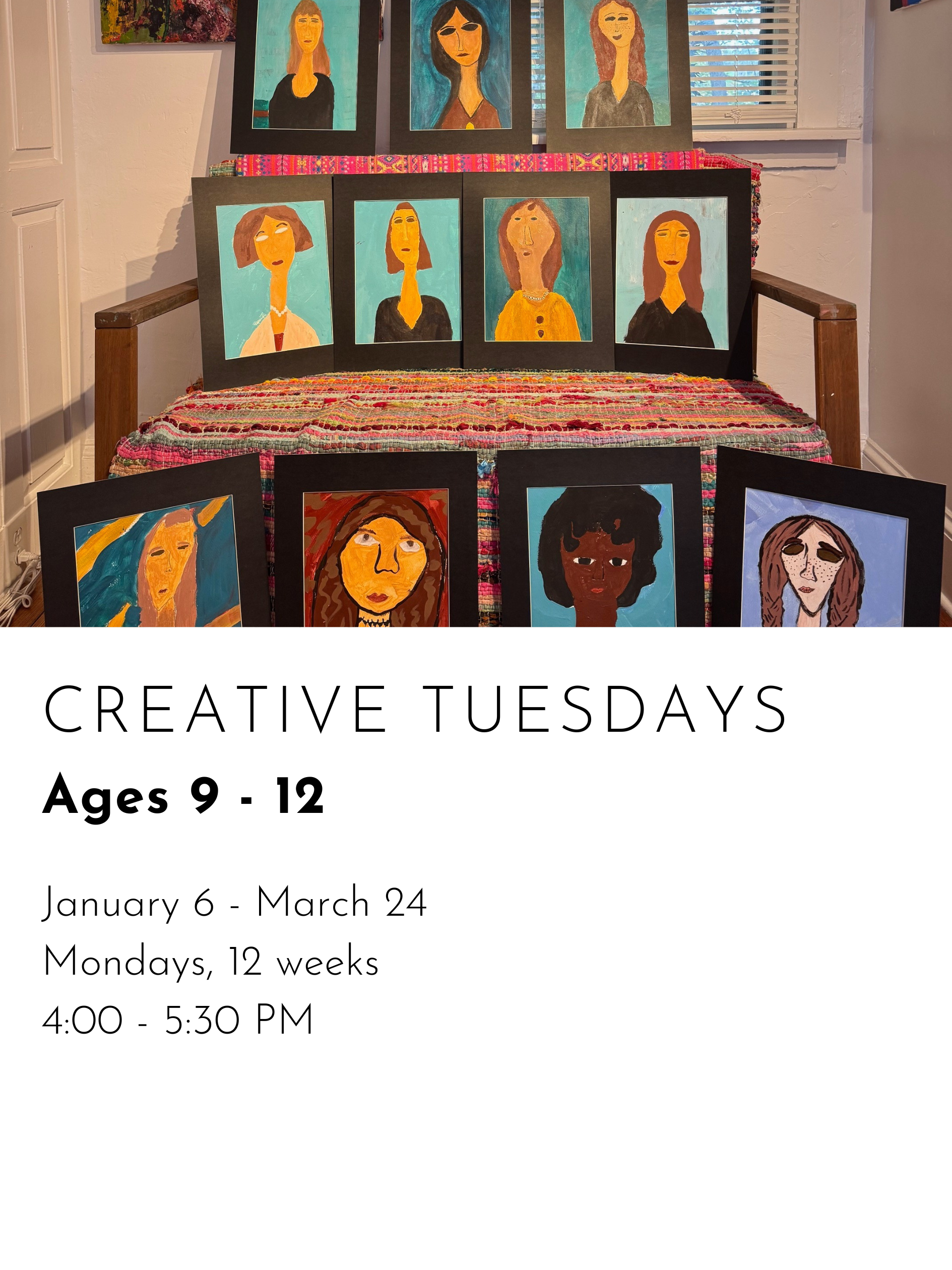 REGISTER FOR WINTER CLASSES CREATIVE MONDAYS $480.00 REGISTER FOR CREATIVE MONDAYS Added! CREATIVE TUESDAYS $480.00 REGISTER FOR CREATIVE TUESDAYS Added! ARTSEE CRAFTSEE $480.00 REGISTER FOR ARTSEE CRAFTSEE Added! CREATIVE WEDNESDAYS $480.00 REGISTER FOR CREATIVE WEDNESDAYS Added! CREATIVE THURSDAYS $480.00 REGISTER FOR CREATIVE THURSDAYS Added! ART LITTLES $480.00 REGISTER FOR ART LITTLES Added! ART LEAGUE $480.00 REGISTER FOR ART LEAGUE Added!