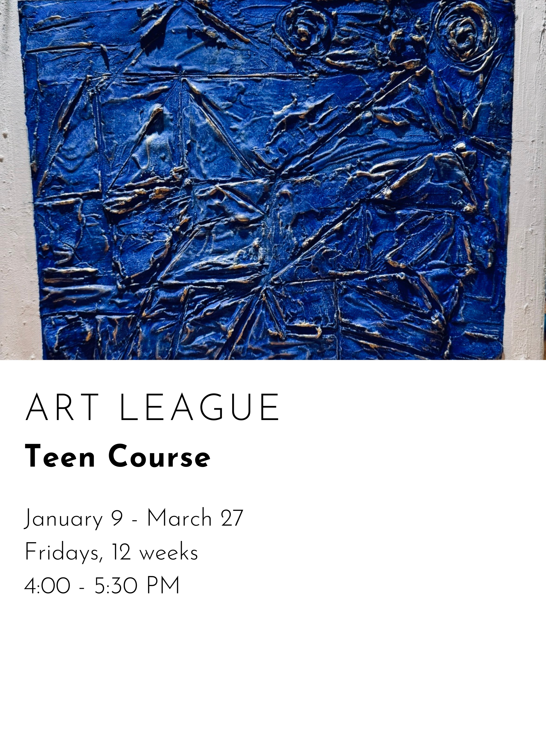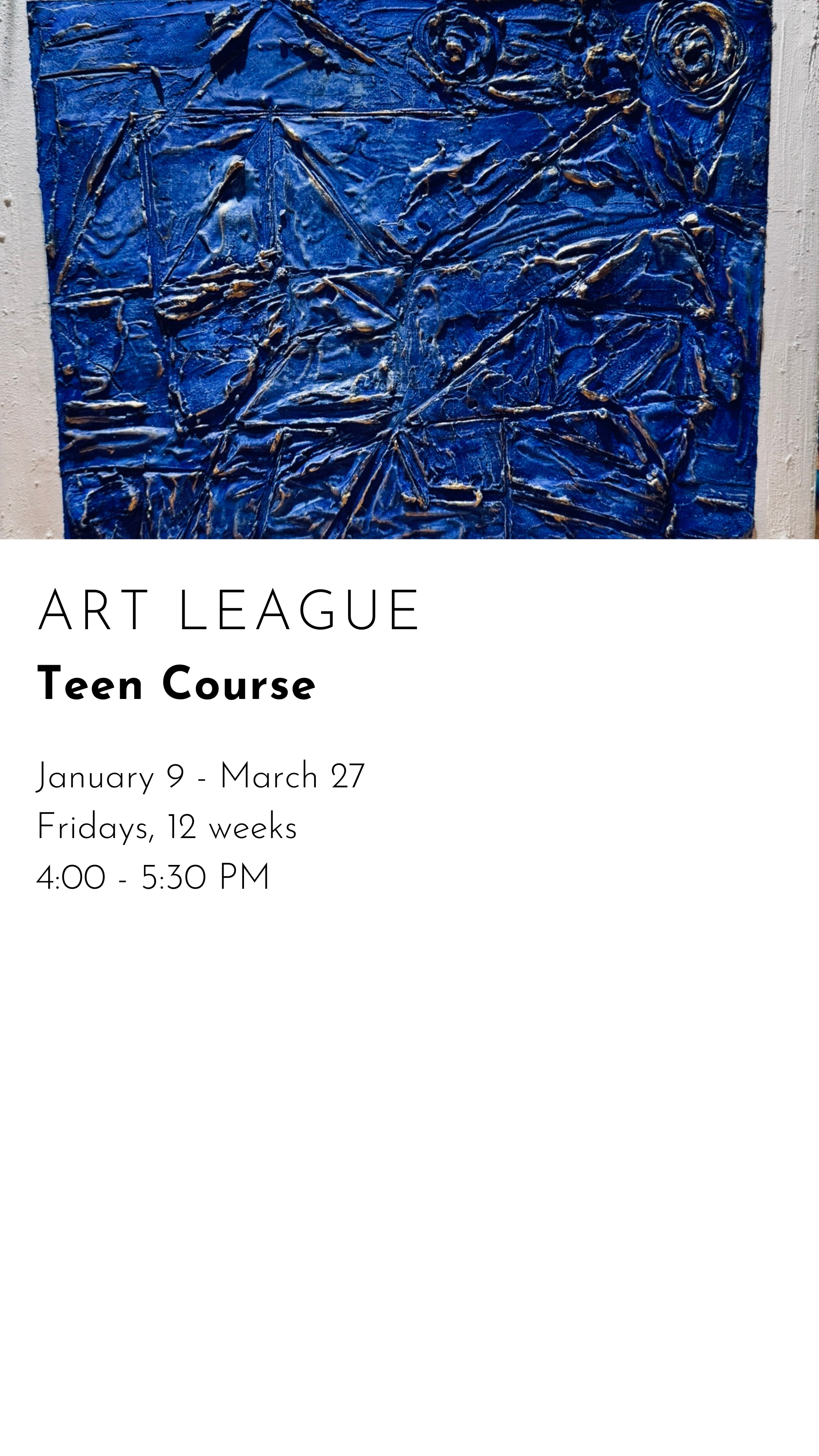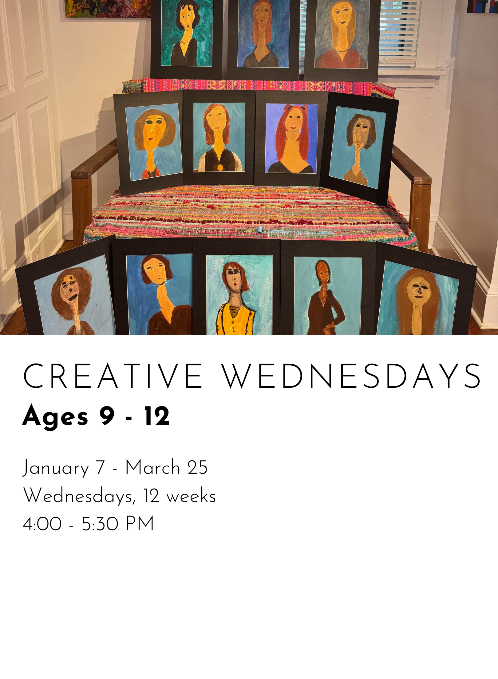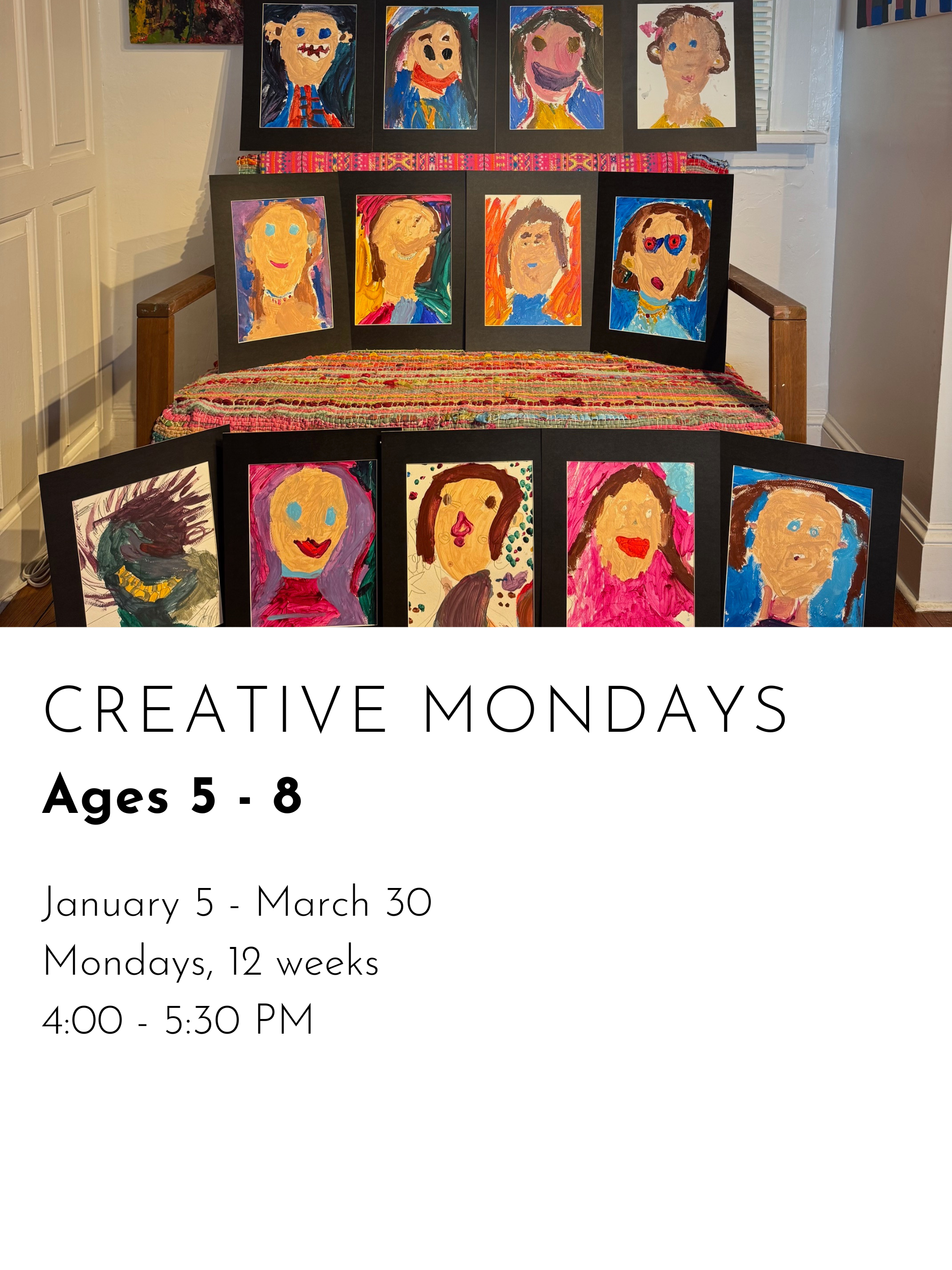 REGISTER FOR WINTER CLASSES CREATIVE MONDAYS $480.00 REGISTER FOR CREATIVE MONDAYS Added! CREATIVE TUESDAYS $480.00 REGISTER FOR CREATIVE TUESDAYS Added! ARTSEE CRAFTSEE $480.00 REGISTER FOR ARTSEE CRAFTSEE Added! CREATIVE WEDNESDAYS $480.00 REGISTER FOR CREATIVE WEDNESDAYS Added! CREATIVE THURSDAYS $480.00 REGISTER FOR CREATIVE THURSDAYS Added! ART LITTLES $480.00 REGISTER FOR ART LITTLES Added! ART LEAGUE $480.00 REGISTER FOR ART LEAGUE Added!